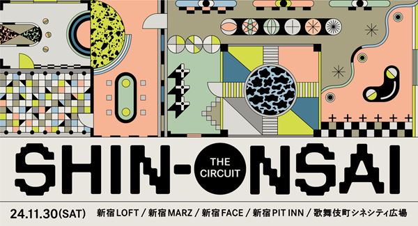 『SHIN-ONSAI 2024 -the Circuit-』は新宿区が地域の魅力を発信し、多くの人に有意義な文化的体験を提供すベく、2018年にスタートした都市型音楽フェス。6回目の開催となる今年は、昨年までのメイン会場であった新宿文化センターが長期休館中のため、歌舞伎町周辺のライブハウス等 5カ所を回遊できるサーキットバージョンで開催する。会場となるのは、新宿LOFT、新宿MARZ、新宿FACE、新宿PIT INN、歌舞伎町シネシティ広場。