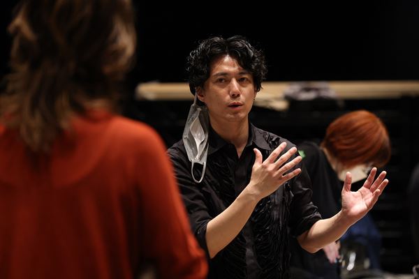初日まで1カ月ほどとなった8月某日、劇場内に併設されている稽古場を訪れた。稽古が始まるまで、俳優陣はストレッチをしたり、セリフや転換の確認をしたりと各々の時間を過ごしていた。一方、演出の藤田は、前日の稽古で気になったことや変更点などを個別に伝えにいったり、スタッフと簡単な打ち合わせをしたりと忙しなく動いていた。現場を率いる上でやることが多いのはもちろん承知しているが、それにしても軽やかに、そしてフランクに稽古場を歩く藤田を見ていると、マメな人だな、稽古場が好きなのだなと思う。