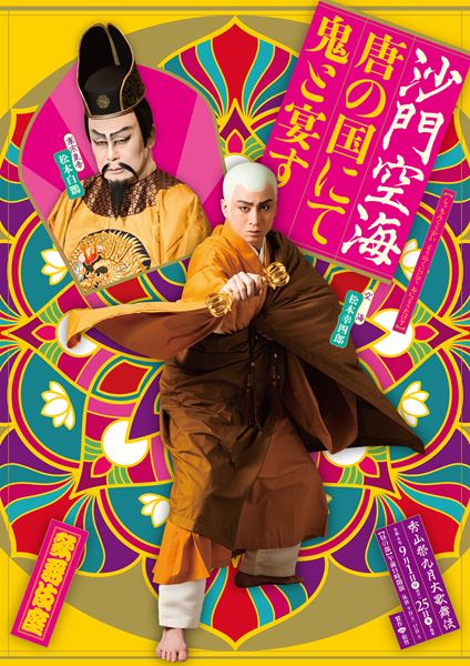 続いては、『沙門空海唐の国にて鬼と宴す(しゃもんくうかい とうのくににて おにとうたげす)』だ。壮大で奇想天外な夢枕獏の同名人気小説を原作とした本作は、平成28(2016)年4月歌舞伎座で新作歌舞伎として上演され、大好評を博した。この度、「弘法大師御誕生一二五〇年記念」として、待望の再演だ。