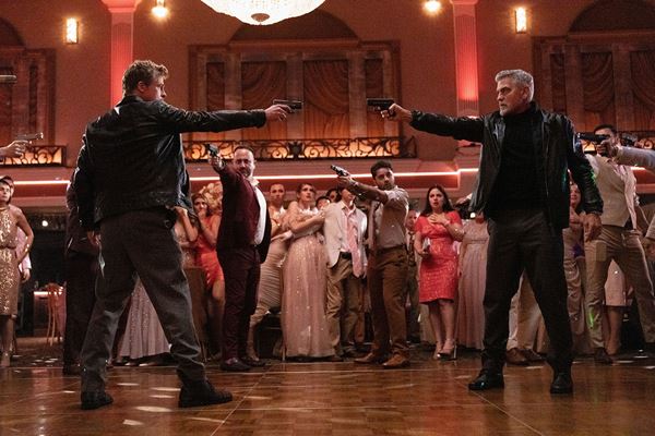 公開された新場面写真は2点。ひとつは、ある仕事の依頼でダブルブッキングされてしまったふたりが協力し、フィクサーとしての仕事をこなしているシーン。普段は単独で行動するふたりだが、お揃いのような革ジャンを着用し、息の合ったコンビネーションを見せている。そしてもうひとつは、フィクサーという職業には似つかわしくないダンスホールで銃を構えるふたりの姿を捉えた写真。お互いに銃を向けあうクルーニーとピット、さらに周囲の人々も銃を構えており、ひと筋縄ではいかなそうな緊迫した様子が写し出されている。