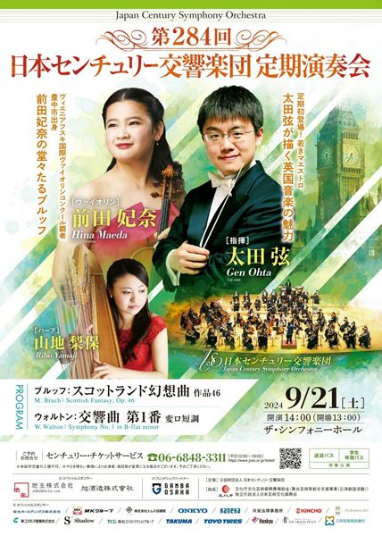 日本センチュリー交響楽団の第284回定期演奏会(2024年9月21日)に、ヴァイオリニストの前田妃奈がソリストとして登場する。