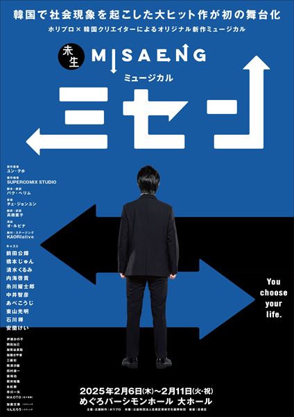 すべて見る韓国で社会現象を起こした大ヒット作の、世界初の舞台化となる新作ミュージカル『ミセン』。2025年1月の大阪・新歌舞伎座での開幕を皮切りに、愛知、東京で行われる初演公演の詳細が発表された。