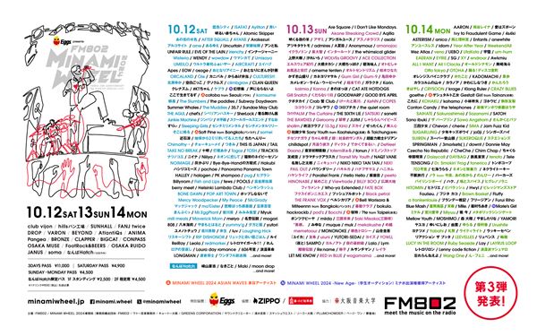 『MINAMI WHEEL 2024』第三弾出演アーティスト&日割り発表!