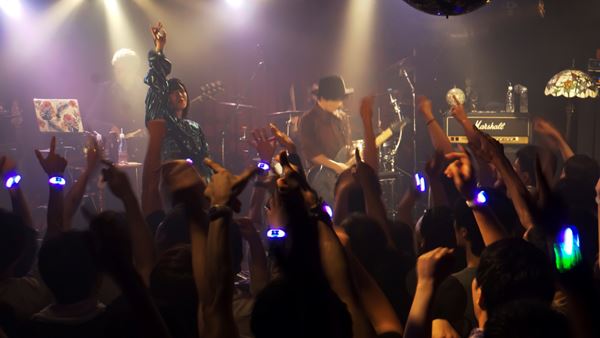 きらびやかな電子音に乗せた英語の台詞から繋げられた「ACHE in PULSE」は、重低音の響きにゾクゾク。サビ前にKIHOWが「跳んでー!」と叫び、自らも跳ねながら歌うと、観客も拳を振ってジャンプ。「エオ、エオ、エオ、エ」の大合唱も盛り上がって、KIHOWは両手を上げてガンガン迫り、最後は大きな拍手が起きた。