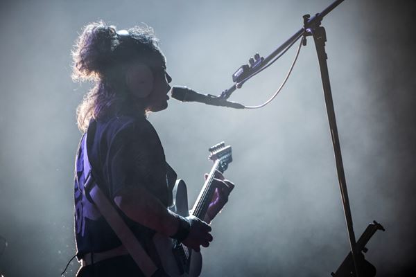 続くアクトは、今年レッド・ホット・チリ・ペッパーズの北米ツアーに帯同し、また英・グランストンベリーフェスにも出演と大舞台を踏んでいるおとぼけビ〜バ〜。よよよしえ(g)による「アー・ユー・レディ?」の大絶叫でスタートしたステージは終始猛烈な勢いで、体の体にビリビリと電気を走らせるようなアンサンブルとあっこりん(vo)のど迫力のボーカルで、フロアを飲み込んでいく。ガレージ感溢れるそのサウンドは、ビザールでありながらとことんキャッチーで、ドカスカと重めのボディーブローを決められているのにもかかわらずスカッとポップ。いつの間にか4人の手のひらで転がされるようなライブだ。