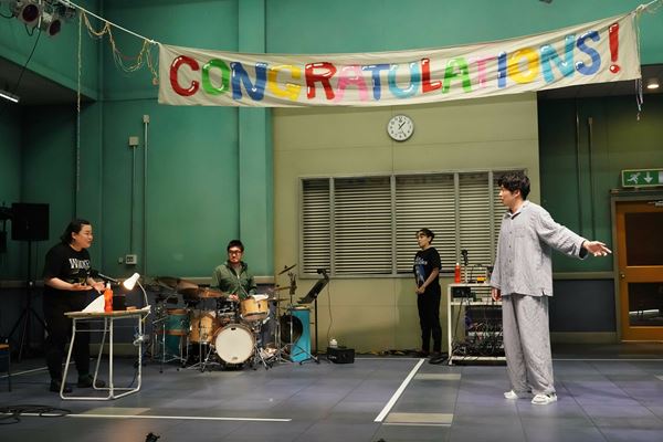 日本初演は、これまでもウォルシュ作品の『バリーターク』『アーリントン』〔ラブ・ストーリー〕を手がけた白井晃が演出を担当。田中圭、奈緒、富山えり子の3人と、ドラム演奏の荒井康太が繰り広げる、ユーモアと不安が混在する会話劇となっている。