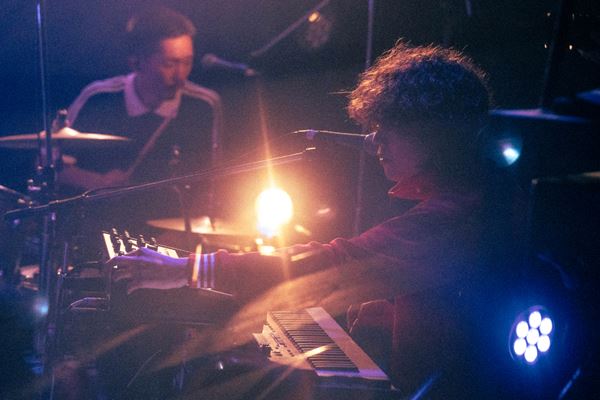 そのままの流れで演奏された“Mist”では、キーボードのやや不穏なコードワークが楽曲を支配する中で、ファルセット主体のボーカルに同じ音形で寄り添うギターの旋律が、夏のそよ風に揺れる風鈴のように静かに響き渡った。