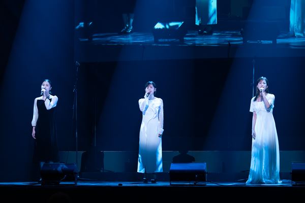 続いて作品を代表する名曲『夢やぶれて』。悲運の女性ファンテーヌが歌うソロナンバーだが、今回ファンテーヌ役を務める昆夏美、生田絵梨花、木下晴香は3人全員が初役となる。この日は3人で、本番の舞台ではないこの日限りのハーモニーも織り交ぜての披露。いずれもミュージカル界で欠かせないスターらしく、安定した歌声を聴かせてくれた。続いても、よく知られた名曲『民衆の歌』。リーダー・アンジョルラスを中心に、学生たちが決起する際に歌われる勇壮なナンバーだが、湧き上がる熱を感じさせるパワーあるアンサンブルの歌声の中、アンジョルラス役に抜擢された小林唯が力強く端正な声を真っすぐ届けた。