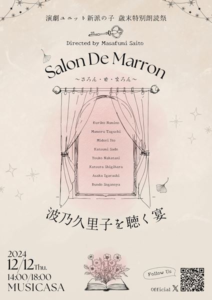 130年を超える歴史を持ち、日本人の心の機微を描いてきた「新派」。コロナ禍にことごとく劇団公演が中止となる中、危機感を募らせた新派文芸部の齋藤を中心とする有志がコロナ禍での新たな演劇活動を模索し、より新しい形でより自由な活動を目指した。2020年11月に第1弾公演を開催し、第3弾公演として開催したのが、2023年4月の1日限りの特別な朗読会『さろん・ど・まろん~波乃久里子を聴く宴』。2回の公演はいずれも満席となり、北條秀司作『太夫さん』では曽我廼家文童を相手役に迎え、大劇場さながらの上演で喝采を浴びた。コンサートホールとして名高い会場に役者の科白が心地好く響き、北條秀司作『明治の雪』ではチェロの生演奏との共演も話題となった。
