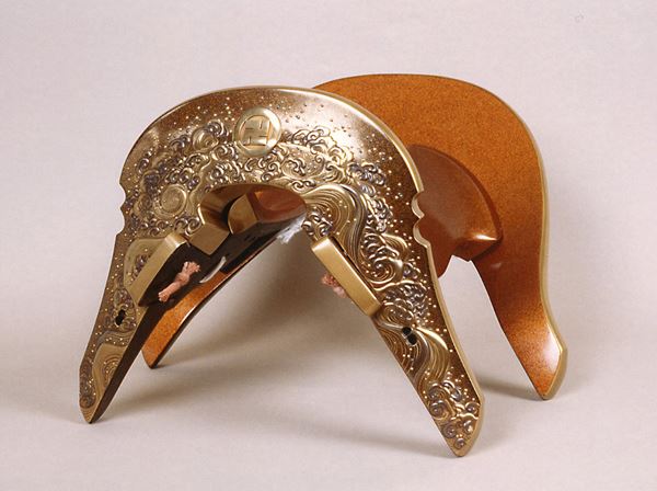 《百草蒔絵薬箪笥》とは、徳島藩のお抱え蒔絵師・飯塚桃葉(初代・?~1790)が制作した薬箱。箱の表面と内部の引き出し前面は、寄裂(よせぎれ)風の文様がほどこされ、エキゾチックで繊細な金具が要所に付された豪華な大名道具だが、なかでも素晴らしいのが本作の蓋裏にほどこされた蒔絵である。ここには百種の草や昆虫がその名とともに精緻な研出蒔絵であらわされており、その選定には本草家など専門家の関与が想定される。