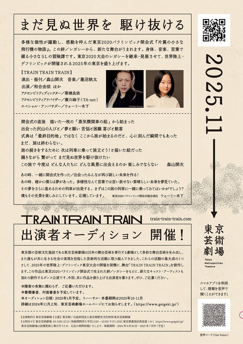 東京芸術劇場、舞台『TRAIN TRAIN TRAIN』出演者オーディション募集を発表