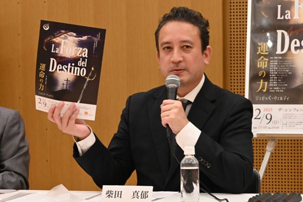 後半はヴェルディの歌劇『運命の力』。発表は大阪交響楽団ミュージックパートナーの柴田真郁を中心に行われた。柴田の就任以来、大阪交響楽団と柴田はこれまでドヴォルザークの『ルサルカ』、ラヴェルの『子どもと呪文』を演奏会形式で取り上げてきた。3回目にして挑むのがイタリアオペラの真骨頂とも言うべきこの作品だ。柴田は「終幕で登場人物のほとんどが死に絶えるという暗い、しかし非常にドラマティックなオペラです。この作品の演奏に当たっていつも思うのが、ヴェルディが徹底してイタリア語の語感で音楽を創り上げているということ。ですから今回私は、そうしたヴェルディの表現を可能にできるキャストにこだわりました。私の希望が120%反映された『運命の力』になると思います」と意気込みを語った。また「その暗い救いのないオペラを今、取り上げる意図は」と記者から問われた柴田は、「このオペラの背景にはイタリアの独立戦争の時代を生きた愛国者ヴェルディの民族と伝統への思いがある。現代の日本に生きている私たちが見失いがちなそうした思いを、作品を通して描いてみたい」と力を込めた。