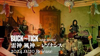 日本テレビ系「DayDay.」11月エンディングテーマにも決定しているシングル「雷神 風神 - レゾナンス」。カップリングにはパソコン音楽クラブによるリミックス楽曲「雷神 風神 - レゾナンス (パソコン音楽クラブ Remix)」を収録。完全生産限定盤は、「雷神 風神 - レゾナンス」MUSIC VIDEOが収録されたボーナスディスクが付属したスペシャルパッケージ仕様となり、限定盤と通常盤の初回生産分には、BUCK-TICKの新しいロゴステッカーを封入。対象店舗にてご予約・お買い上げの方に先着で特典がプレゼントされる。
