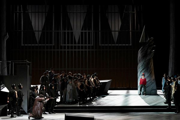 いっぽう、ダンスは第1&3幕に組み込まれている。オペラのバレエ・シーンによくある、取ってつけたようなバレエが唐突に挿し込まれるのではなく、物語の流れに沿った自然な使われ方。ただし今回は、13人のダンサーたちが、村人や兵士といった物語上の登場人物だけでないキャラクターも演じて楽しい。このダンス・シーンだけを切り出してもひとつの小品として成立しそう。ちょっと不思議なインパクトは見どころのひとつだ(振付=ナタリー・ヴァン・パリス)。