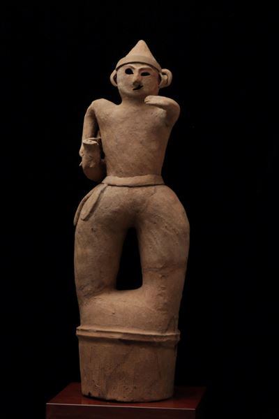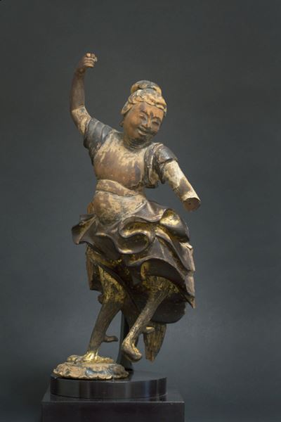 そして、近世と近代の日本の絵画を展示の中心とするこの館では珍しいことに、今回は古代のはにわや仏教美術も登場する。狩猟がうまくいったことを象徴するような古墳時代の《埴輪(猪を抱える猟師)》(個人蔵)や、極楽浄土に棲む想像上の美声の鳥・迦陵頻伽(かりょうびんが)を人の姿で表した室町時代の《迦陵頻伽像》(個人蔵)など、いずれもほっこりせずにはいられない造形だ。