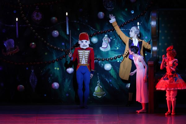 幕開けは、シュタールバウム家のクリスマスパーティー。華やかな宴ののち、皆が寝静まった夜中の広間で繰り広げられるのは、ねずみの王さまとの兵隊たちの戦いだ。マーシャに助けられたくるみ割り人形は、王子となって彼女を夢の世界へといざなう。