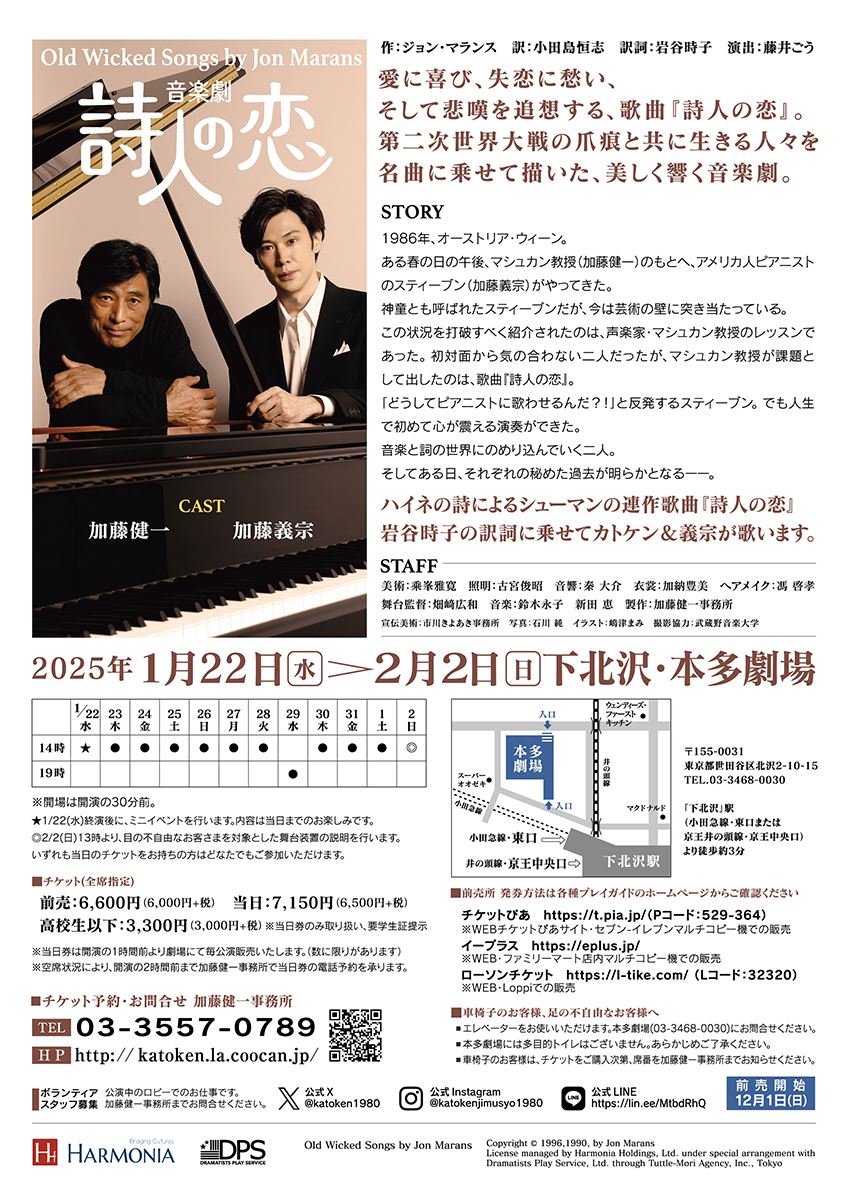 加藤健一事務所の人気作『詩人の恋』令和版を2025年1月に上演 画像(