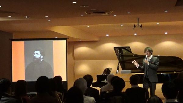 前半は、『カルメン』についてのレクチャーが行われた。講師を務めたのは、公演でレメンダード役を演じるテノールの高田正人。軽妙なトークで、参加者を作品の世界に誘った。
