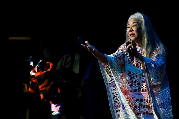 デビュー60周年の古謝美佐子と初舞台から45周年の勘緑が繰り広げる沖縄民謡と文楽人形のコラボレーション『古謝×勘緑 祈りの歌舞(うたまい)』が11月23日(土・祝)にクレオ大阪東にて開催された。二部構成となっていた今回のステージ。第一部は“ご祝儀踊り”の「三番叟」をはじめとした明るい調子の曲が多く、第二部では“祈りの歌舞(うたまい)”と銘打った本公演の軸となるテーマ“反戦と平和”を強く訴えかける内容となっていた。深みと温かみがある唯一無二の歌声に癒され、音楽に共鳴し生命力を宿す文楽人形に見入った同公演の模様をお届けする。