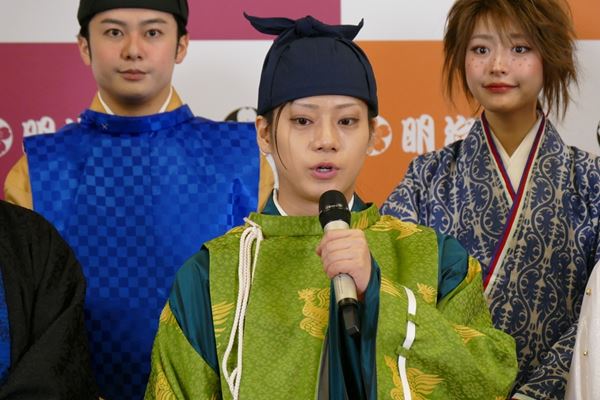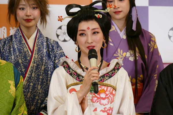 特別出演する花總まりは、渡来人で都の遊技場を仕切る女主人・昭姫役を勤めており、「緊張しつつも興奮しております」と声を弾ませる。役どころについては、「正義感があって、ちょっと色っぽい。同じ女性として憧れる部分もたくさんありますが、共通点と言われると(笑)。それよりも、今はこのお役を楽しんでやりたいなと思っております」と語った。
