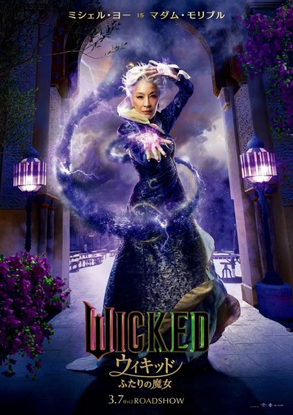 また、険しい表情で天候を操る魔法を繰り出しているのは、シズ大学の魔法学の権威マダム・モリブル(ミシェル・ヨー)。多くの学生が彼女のもとで学びたいがためにシズ大学に入学してくるほどのカリスマ性を誇り、エルファバの才能にいち早く気付く人物である。