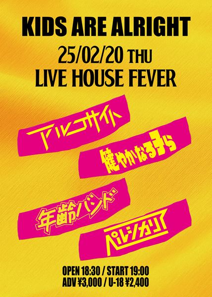 アルコサイト、健やかなる子ら、年齢バンド、ペルシカリアが出演するイベント『KIDS ARE ALRIGHT』来年2月に開催