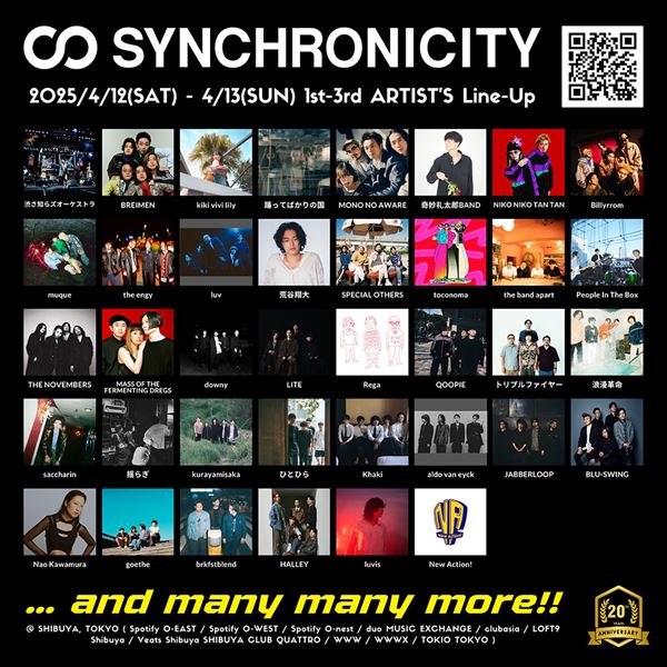 すべて見る2025年4月12日(土)、13日(日)に東京・渋谷にて開催の都市型フェスティバル『SYNCHRONICITY'25-20th Anniversary!!-』の第3弾ラインナップが発表となった。
