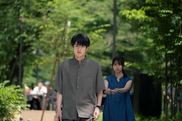 そして、先に湊が東京の大学へ進学し、2年後に美海が追いかけるように上京したのをきっかけに、同棲生活がスタート。木漏れ日の差すサンルームで頬を寄せ合う姿を捉えた1枚は、この作品を象徴する“ゲッキツの花”がふたりの幸せな時間を彩り、テラスで見つめ合うデート中の姿も確認できる。