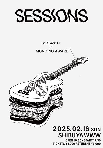 『SESSIONS』は、今えんぷていが最も共演したいアーティストとのツーマンを行う企画イベント。ビジュアルはメンバーが注目するデザイナー・イラストレーターとのコラボレーションを行うなど、えんぷていの世界観を表現したイベントとなっている。MONO NO AWAREとえんぷていは同レーベル所属でありながら初の共演となる。