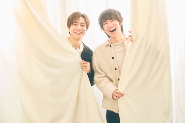 すべて見る撮影中、フォトグラファーから「じゃあ、ちょっとカーテンにくるまってください」とオーダーが。すると、和田雅成が「これだけカーテンにくるまっているのは、俺らかFRUITS ZIPPERくらいや」とひとボケ。しかし、FRUITS ZIPPERを知らない和田琢磨は思わずハテナ顔。そんな和田琢磨を和田雅成が「FRUITS ZIPPER知らないのはやばいですよ!」とイジリ倒すことで、現場は一気になごやかな空気に包まれていく。