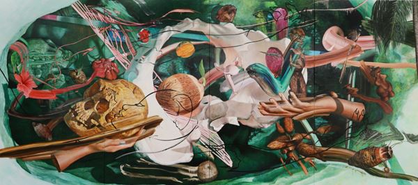 今津の絵画の魅力は、現在おきている問題の提示に加え、歴史や神話、政治など様々な要素を同一平面上に並置して生み出したダイナミックな表現だ。さらに近年の今津は、絵画に留まらず、3Dプリンターによる巨大な立体作品やインスタレーションなど、創作を空間へと展開させてきた。同展でも、居住するバンドンで行われていたというマラリアの特効薬であるキナの栽培をめぐる新作インスタレーションに加え、骨格標本や土器などの巨大な彫刻が展示される。会場全体を通して、今津の力強い作品世界にふれられる貴重な機会となるだろう。