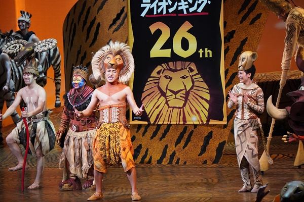 通常のカーテンコールが終わると、緞帳が上がり、舞台上のプライドロック壁面に「26周年」の幕が掲揚。出演者を代表し、シンバ役の山下啓太が、感謝とともに「今後も多くのお客様にご覧いただけるよう、さらなる挑戦を続けて参ります」とファンに向けて、さらなる飛躍を誓った。その後、「彼はお前のなかに生きている(リプライズ)」が特別バージョンで披露され、熱気溢れるカーテンコールが繰り返された。