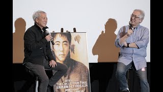 プレミア上映は贅沢に2スクリーンを使って開催。スクリーン3には、佐野元春と音楽評論家の萩原健太氏が登壇し特別対談が行われた。萩原氏は80年代から長きにわたり佐野の音楽活動をレビューし続けてきたジャーナリストのひとりで、今回『The Circle 30th Anniversary Edition』ブックにも解説を寄稿している。軽快なBGM「カフェ・ボヘミアのテーマ」に乗ってステージに登場した佐野。プレミアチケットを手にした200人のファンがスタンディングの拍手と歓声で迎える。「この中で、実際に武道館の会場にいたかたはどのくらいいますか?」という萩原氏の呼びかけに20人近くが誇らしげさに挙手。「すごいことだよね!」と佐野は最高の笑顔で客席を見渡していた。「だけど、この日がザ・ハートランドの解散ライブになることを知っていたファンはいないんですよね」(萩原)。