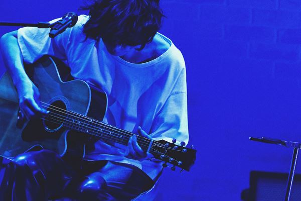 青く照らされた白い空間に川上洋平がひとりでふらっと現れ、咳払いをした。楽し気な口調で「みんな、緊張してない? 大丈夫?」とオーディエンスに話しかけると、客席から緊張がほぐれたような笑い声が上がった。アコースティック・ギターでアルペジオを奏で、「Untitled」からライブはスタート。川上の雄弁な歌とギターだけが響き、オーディエンスがじっと耳を傾ける。毎年恒例の光景だが、今年はステージ上にギター、ドラムセット、キーボードといくつもの楽器が置かれている。