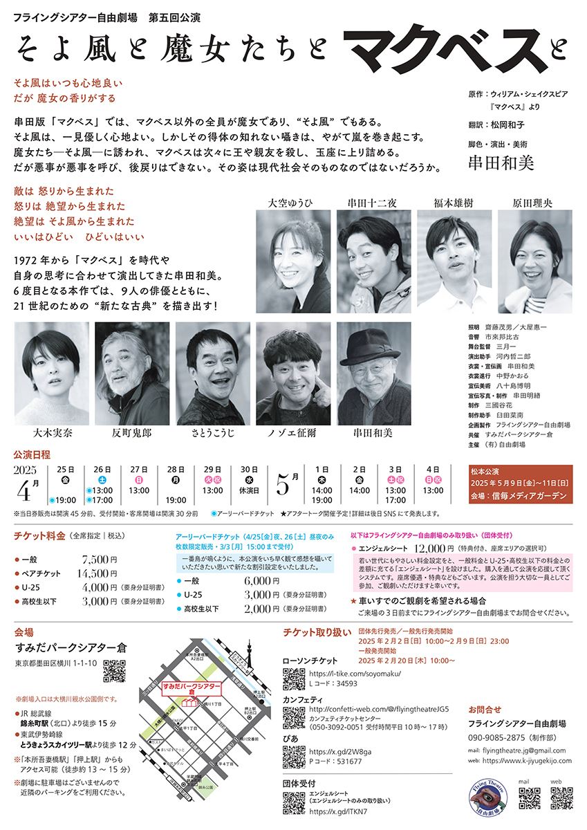 串田和美がシェイクスピアの『マクベス』を脚色 フライングシアター自由劇場の第5回公演『そよ風と魔女たちとマクベスと』上演決定
