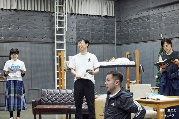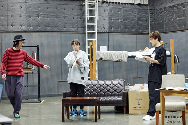 現在進行形の稽古について「3~4行おきに止まっています」、「その場、その場で変化する空気感をみんなで共有しながら進めています」と語っていた河原。実際にインタビュー後に見学させてもらった稽古では、藤井、坪倉、岡本らのシーンが行なわれていたが、ちょっとしたセリフやリアクションを何度も繰り返しつつ、ニュアンスを突き詰めていく光景が見られた。