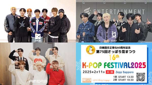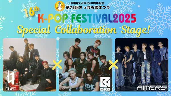 2025年2月11日(火・祝) に北海道・Zepp Sapporoで開催される『第75回さっぽろ雪まつり16thK-POP FESTIVAL2025』で、DKB、E'LAST、AIMERSの3組が初のスペシャルコラボステージを披露する。