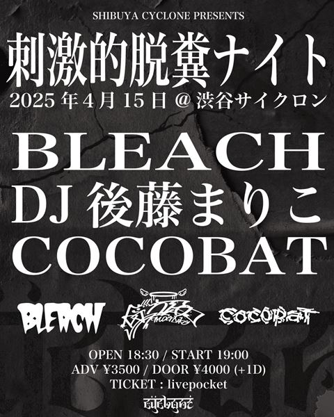 出演:BLEACH、DJ後藤まりこ、COCOBAT