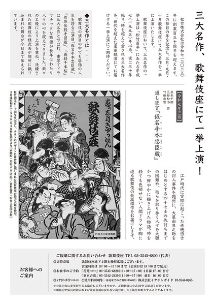 歌舞伎座 松竹創業百三十周年『三月大歌舞伎』チラシ画像(表)