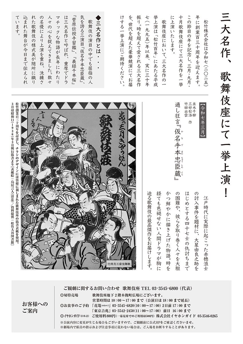 令和7年3月歌舞伎座『仮名手本忠臣蔵』主な配役発表 Aプロ・Bプロの2通りで上演