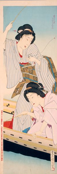 見どころのひとつは、代表作《具足屋版役者大首絵》シリーズが一挙に12点公開され、「初摺」と呼ばれる摺りの早い時期の作品を多く含む、保存状態の良い名品を目にできること。また肉筆画では、1893年に開催されたシカゴ・コロンブス万国大博覧会のために制作された晩年の華やかな逸品《墨堤観花図》(前期)や、初公開の肉筆美人画《遊女とほととぎす》(前期)なども登場する。