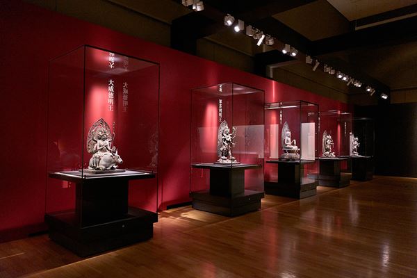 特別展では4つの章に分けて寺宝を紹介。第1章「嵯峨天皇と空海 -離宮嵯峨院から大覚寺へ」では初期の大覚寺の様子を示す展示となっており、東京では初めて明円作の五大明王像が5体そろって公開されている。