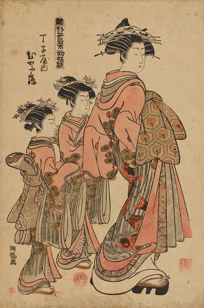栄松斎長喜は、専属的な絵師だった歌麿が蔦屋を離れた後、蔦重が新たに売り出した絵師だ。「長喜の特徴はなで肩でこけしのような女性と言われますが、江戸ではなく上方の遊女たちを描き、新しいトレンドを作り出そうといった意識も見えます」(松嶋さん)