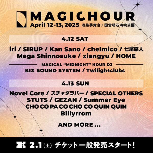 すべて見る4月12日(土)・13日(日)の2日間、淡路夢舞台/明石海峡公園で開催されるリゾートフェス『MAGICHOUR』の第3弾アーティストが発表された。