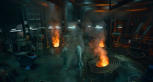 併せて公開された新たな場面写真には、ロバート・パティンソン演じるダメダメ使い捨てワーカーのミッキーが何かを決意したように見える表情を捉えた場面、超絶ブラック企業のトップ、マーシャルとイルファが労働者の前で演説している場面、そして炎を吹き上げる焼却炉でふたりのミッキーが意味深に向き合っている姿、さらに“死にゲー”任務を終えたミッキーが再び生き返らされる瞬間が写し出されている。