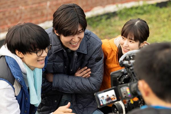 公開されたのは、2月23日に実施された大阪・名古屋での舞台挨拶でもチームワークの良さを感じさせた、目黒蓮(ハル)、佐野勇斗(ガク)、福本莉子(凛々)のトリリオンゲーム社創立メンバーの3名のメイキングカット。