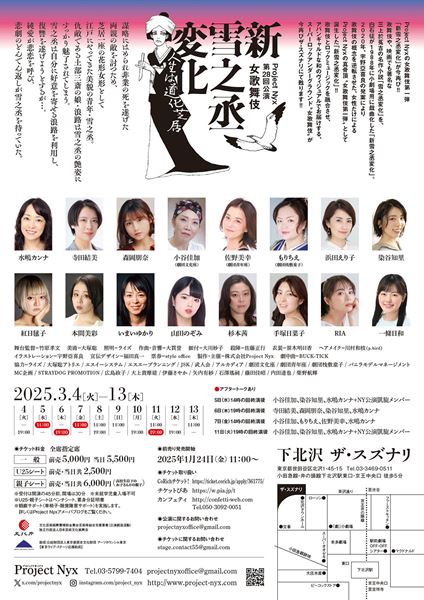 すべて見る2025年3月4日(火) 、東京・ザ・スズナリにてProject Nyx第28回公演 女歌舞伎『新雪之丞変化』が開幕する。