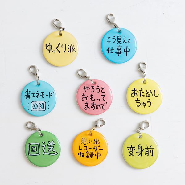今の気分を代わりにアピールしてくれる両面のポッティングの(樹脂コーティング)キーホルダー。