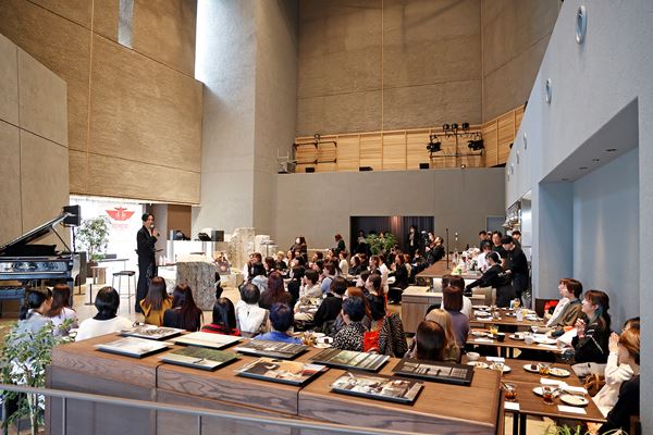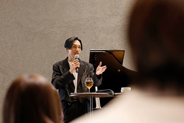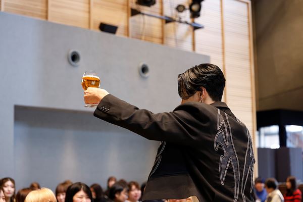 イベントは、「ようこそ福井市へ!」の歓迎の言葉とともに、まずは集まった全員ひとりずつとの乾杯からスタート。昨年の北陸新幹線福井開業に合わせてオープンした会場のULOとのコラボレーションで作り上げたメニューについて説明した後は、EXILEへの加入日=3月1日にちなんで2009~2025年の16年間を貴重な写真で振り返りつつ、来場者から事前に募集した「橘ケンチに行ってほしいおすすめスポット」に応える形で前日に撮影した映像を公開するなど本人発案による多様な企画が進行していった。