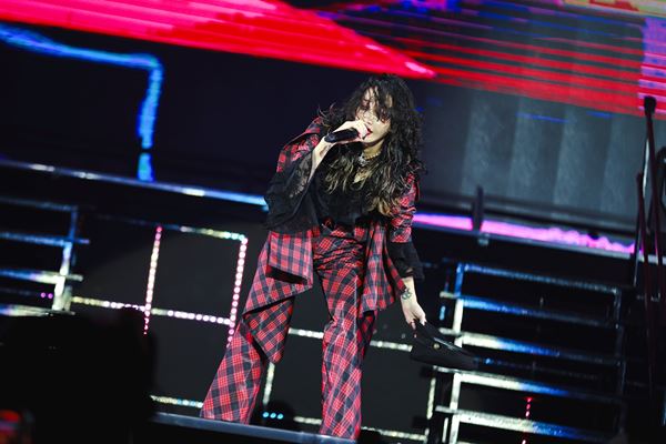 エモーショナルな歌声に酔いしれる観客を前に一転、赤チェックのジャンプスーツにワイルドなグランジ風ヘアスタイルで再登場。アジアでも人気を誇るロックナンバー「GLAMOROUS SKY」や「LOVE IS ECSTACY」で一気に盛り上げ会場に一体感が生まれた。